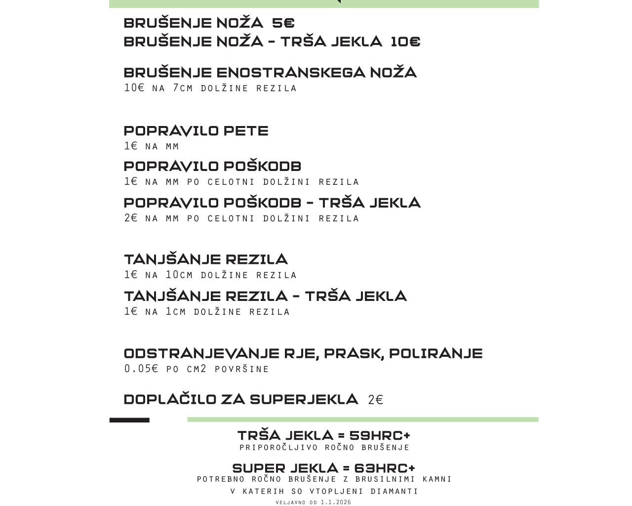 Zaračunamo glede na vložen čas in obrabo abrazivnih sredstev, vendar ne več kot je napisano v ceniku.